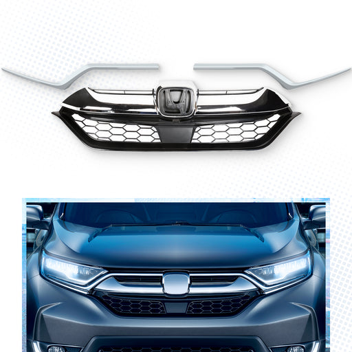 Front Bumper Upper Chrome Grille Grill For 2017 2018 2019 Honda CRV CR-V