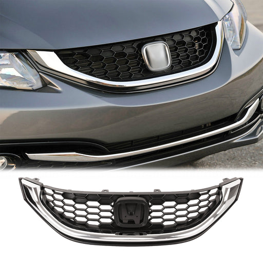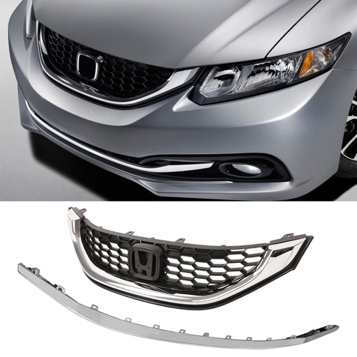 PENSUN Front Bumper Upper Grille Grill W/Chrome Trim For 2013-2015 Honda Civic Sedan