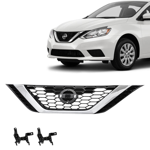 PENSUN Front Grille Grill Fit for 2016 2017 2018 Nissan Sentra 62310-3YU0A / Chrome & Black