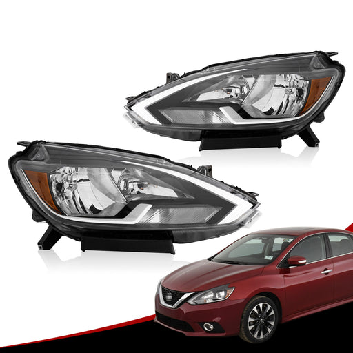 PENSUN Headlights Assembly Fit for 2016-2018 Nissan Sentra, Halogen Headlamps