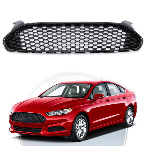 PENSUN Honeycomb Mesh Grill Fit for 2013 2014 2015 2016 Ford Fusion, Upper Grill Direct Insert Replacement FO1200553 / Glossy Black